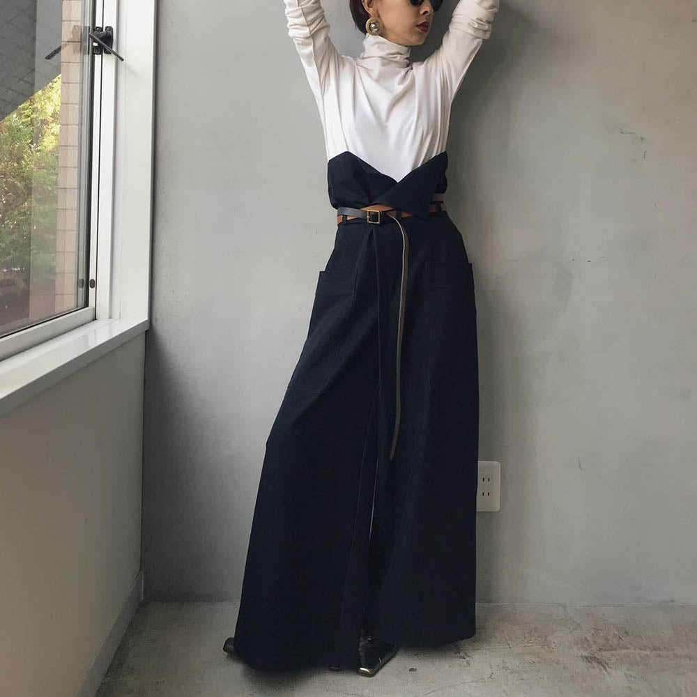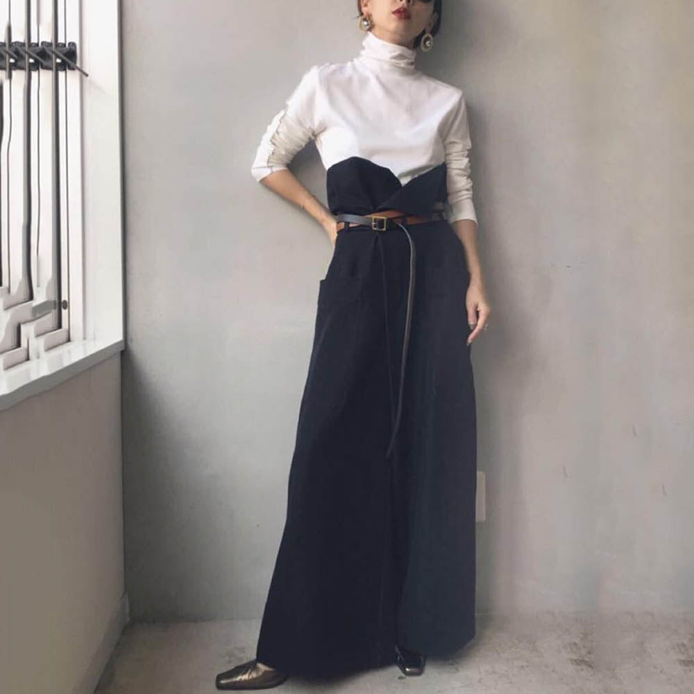 ハイウェストゆったりワイドレッグパンツオールインワン