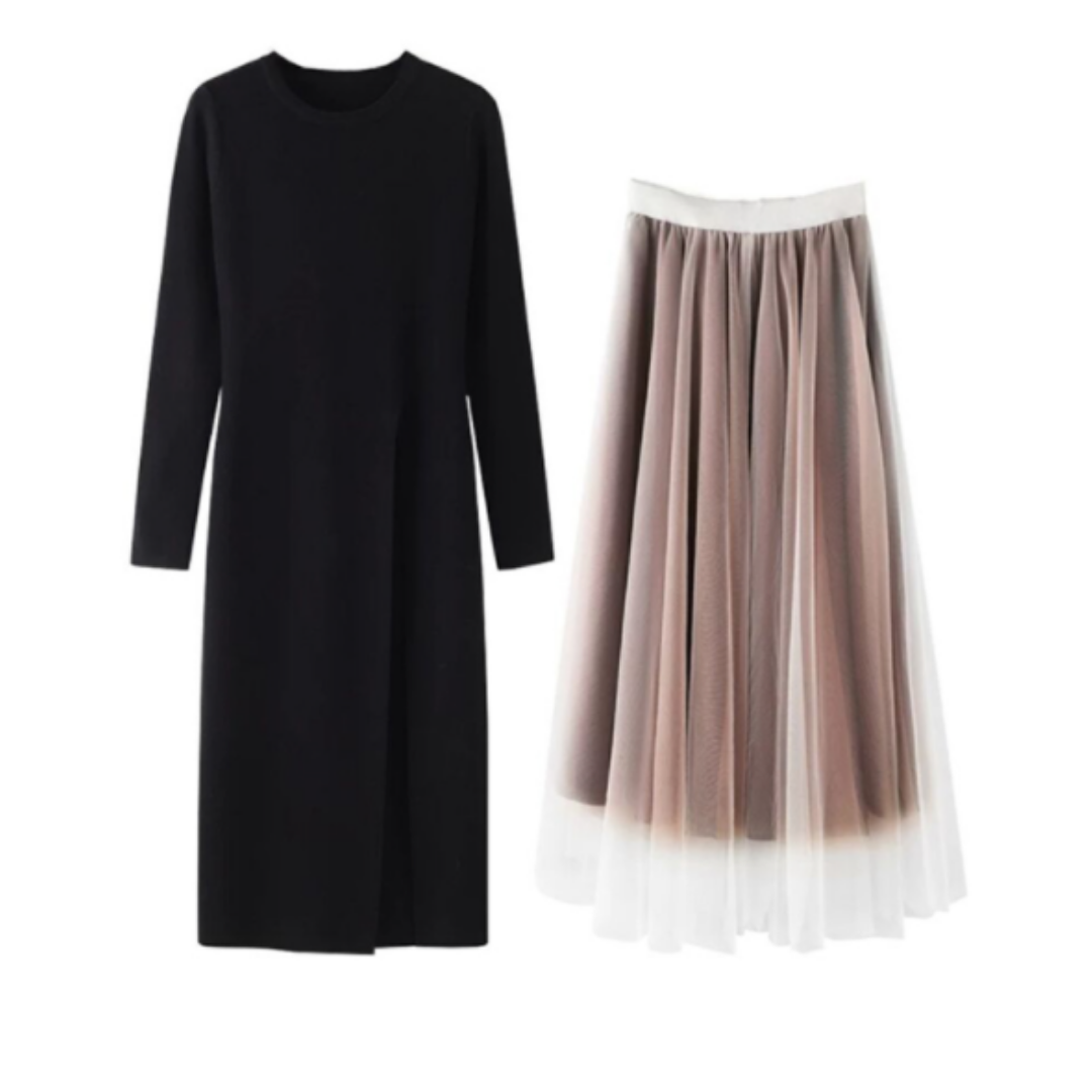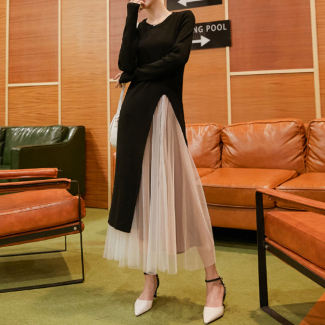 人気のツーピース新作セーターメッシュワンピースロング