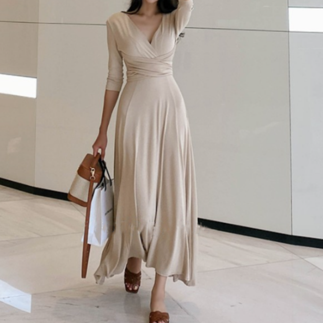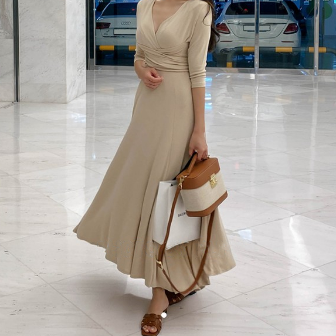 Vネック春服ワンピース